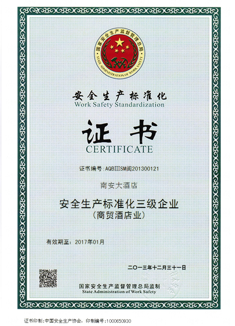 南安大酒店順利通過安全生產標準化三級企業(yè)(國家標準)評審作者: 來源:南安大酒店總經理辦公室 時間:2014-1-16 10:04:45 安全無小事,安全生產是關乎個人、集體的大事。2013年12月28日,福州市勞動保護科學技術學會評審組根據(jù)《企業(yè)安全生產標準化基本規(guī)范》、《冶金等工貿企業(yè)安全生產標準考評辦法》、《酒店業(yè)企業(yè)安全生產標準化評分標準》及《福建省政府安委會辦公室關于進一步加強全省規(guī)模或限額以上工貿行業(yè)企業(yè)安全生產標準化工作的通知》等有關要求,對我店開展關于企業(yè)安全生產標準化工作的現(xiàn)場評審。