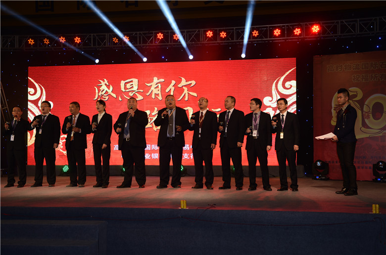 授牌儀式后,廈門星程工貿有限公司董事長孫燕鵬先生作為客戶代表進行發言,他表示一路與高時物流共同成長,見證了高時物流的進步,也非常感謝高時物流提供的優質服務,希望大家在這個大家庭里繼續欣欣向榮的發展下去。 頒獎儀式結束后,高時物流管理團隊集體上臺向所有出席活動的嘉賓敬酒,高喊“感恩有你·一路同行·攜手并進·共創未來”,那一刻現場所有人的心都被凝聚在一起!未來,我們一起努力一起奮斗,創造更美好的明天! 隨后一段熱辣的桑巴舞蹈和一曲由2013年泉州電視臺唱歌拼輸贏年度總冠軍楊德松老師帶來的勵志歌曲《堅持》以及泉州農行藝術團的歌曲舞蹈帶出本次晚會的第一次抽獎活動,將晚會推向另一個高潮!