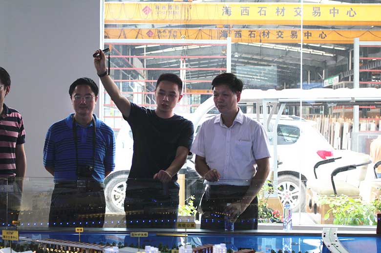 在海西招商服務中心聽取了海西石材城執(zhí)行總經(jīng)理葉喬鈞對項目的詳細介紹后,考察團深入海西園區(qū)的各個區(qū)域進行實地考察。